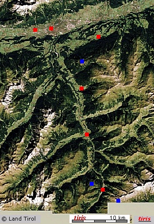 Das Wipptal ist durch die gekennzeichneten Stationen recht gut erfasst,