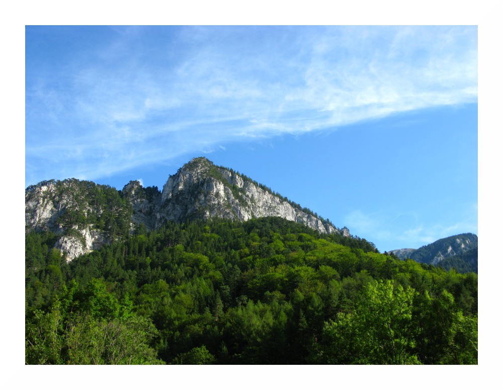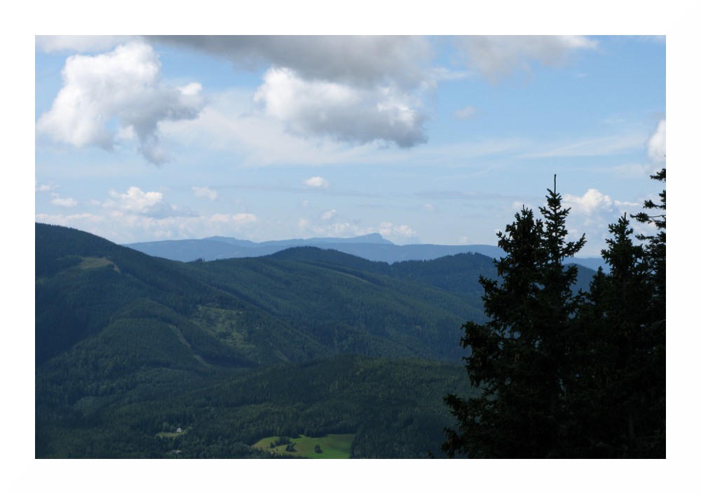 Vor dem Obersberg befinden sich Großer (1186m) und Kleiner Fegenberg (1134m), die von Schwarzau im Gebirge kommend die Sicht auf die Rax teilweise verdecken.