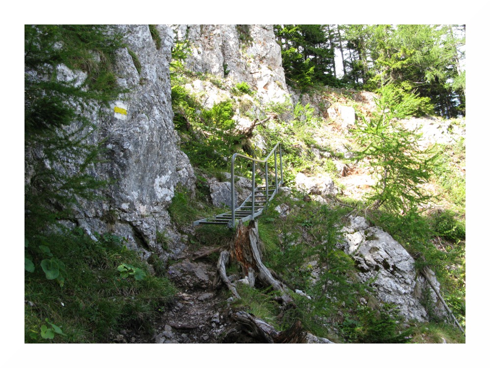 - Schwierigkeit: Camillo-Kronich-Steig im oberen Bereich geröllig, schmal, ausgesetzt, an wenigen Stellen versichert, zwei Leitern
