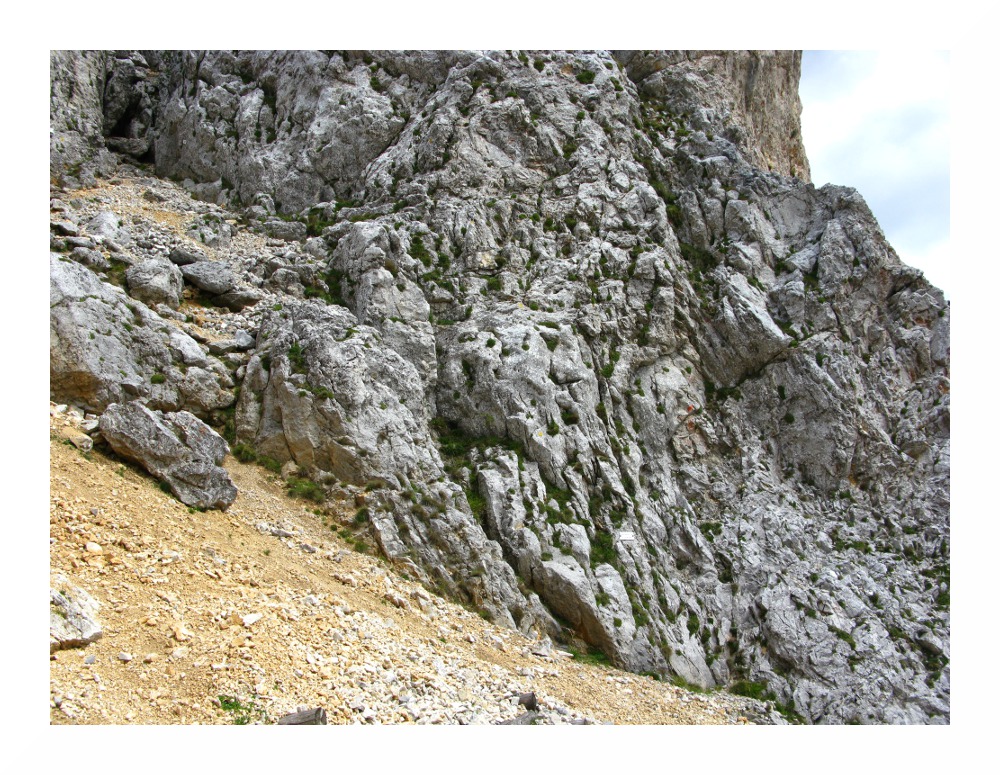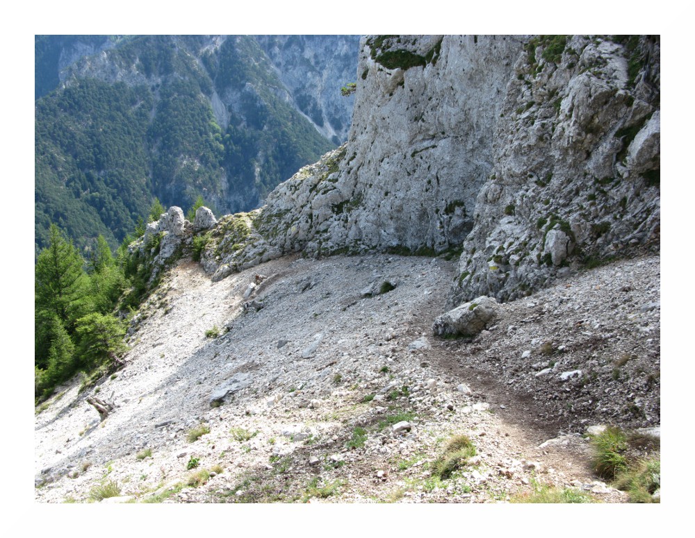 Nachdem man die erste Seilversicherung, eine harmlose, nicht ausgesetzte Querung, hinter sich hat, gelangt man über steile Schotterserpentinen zum relativ kurzen Camillo-Kronich-Steig