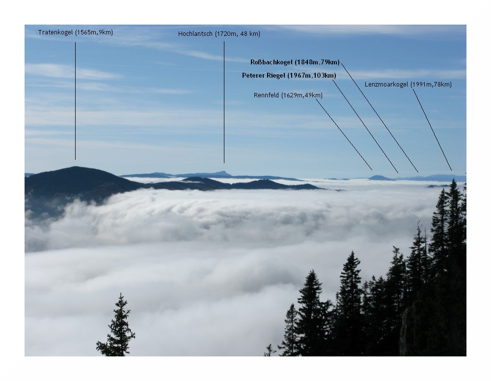Heute ist die Fernsicht trotz Restfeuchte gut, sogar der Zacken des Hochlantsch (1720 m) ist sichtbar.