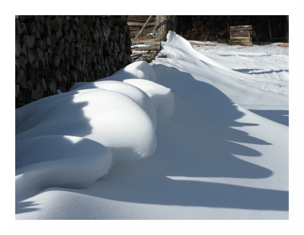 Bild 10: Schneeverwehungen hinter einem Holzstapel