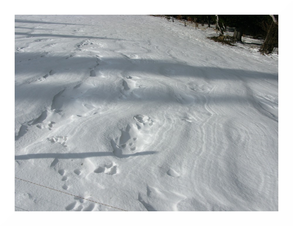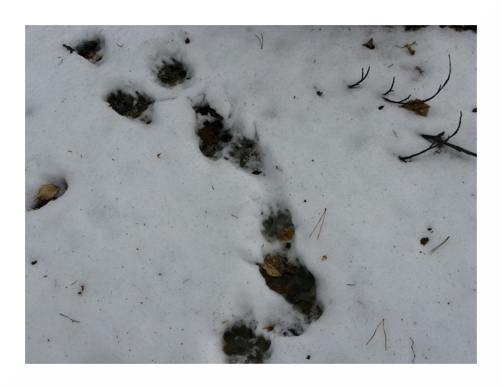 Bild 2: Ein krallenbehaftetes Tier legte vorbildliche Spuren entlang des gesamten Aufstiegswegs. Deshalb verwunderlich, da sich keine menschlichen Spuren daneben befanden (wir trafen keine Menschenseele beim Auf- und Abstieg)