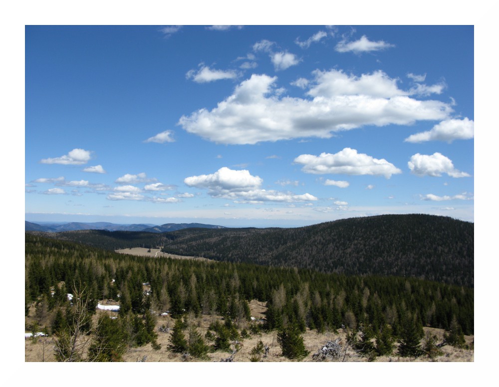 Der Weg zum Gipfel ist unmmarkiert, aber durch den lichten Wald leicht zu finden. Direkt am kreuzlosen Gipfel steht ein Jäger-Hochstand. Normalerweise geh ich da nicht rauf, aber dieses Mal war die Verlockung zu groß und die Konstruktion stabil genug, sodass ich eine atemberaubende Rundumsicht genießen konnte.