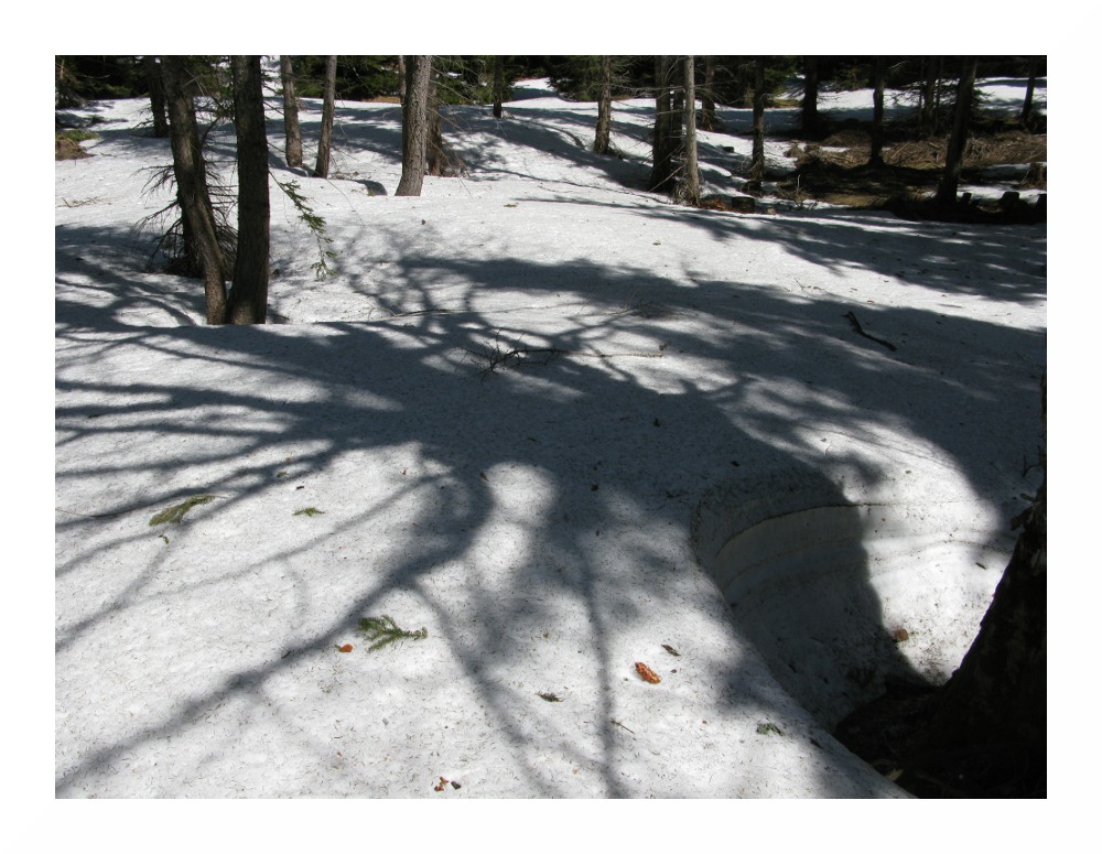 Vom Saurüssel ging ich dann nach Norden an ausgedehnten Altschneefeldern vorbei, die teils beträchtliche Dicke aufwiesen, wie folgende Bilder zeigen