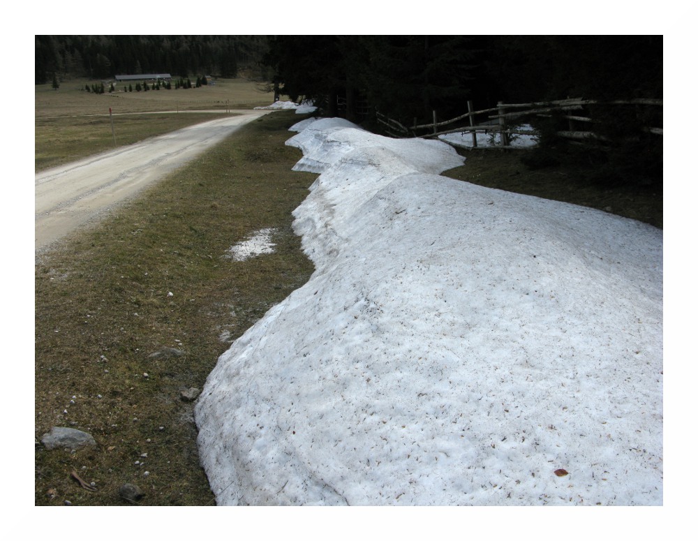 Bild 18: Altschneereste am schattigen Waldrand der Bodenwiese