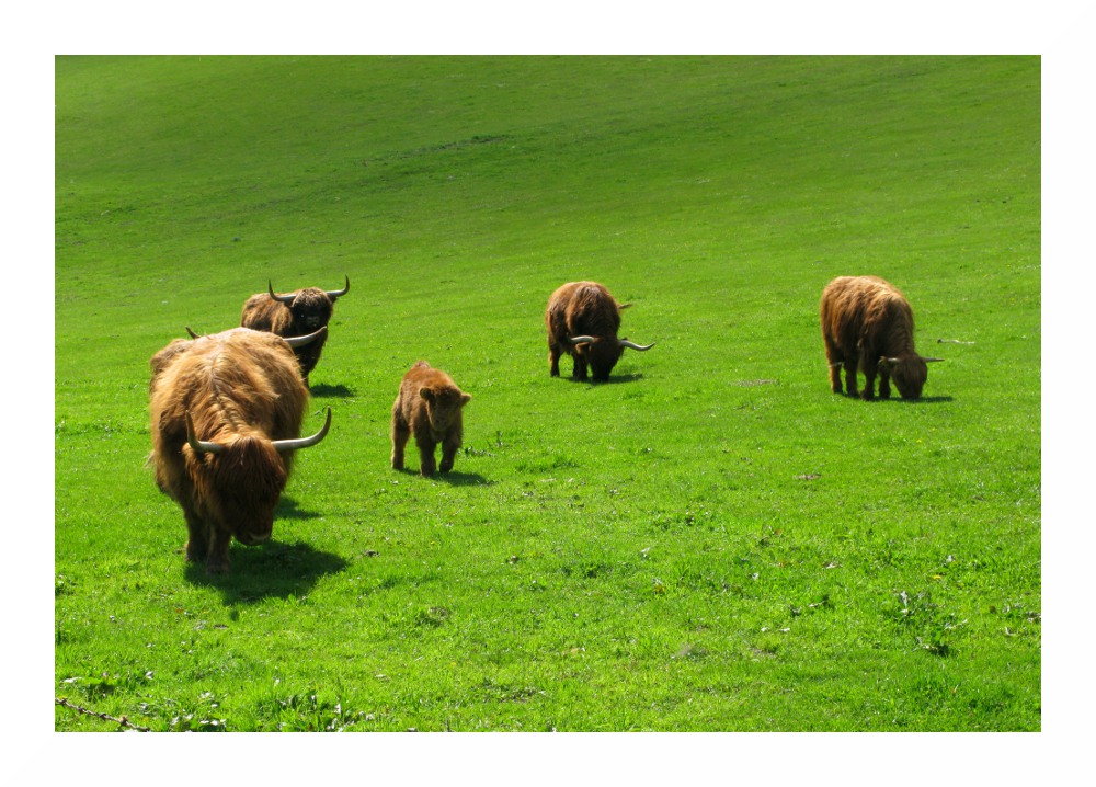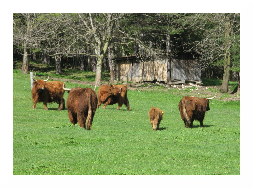 Bild 27 und 28 : Schottische Hochlandrinder mit Kalb (sieht aus wie ein Bär)