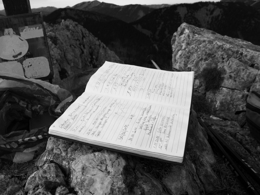 Bild 16: Gipfeleintrag (im Hintergrund Gemeindealpe, Kleiner Ötscher und Göller)