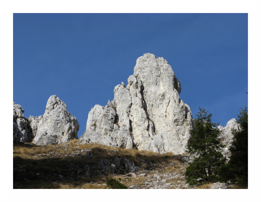 Mit dem zunehmend kräftiger werdenden Sonnenschein werden die hellen Kalkfelsen angeleuchtet,