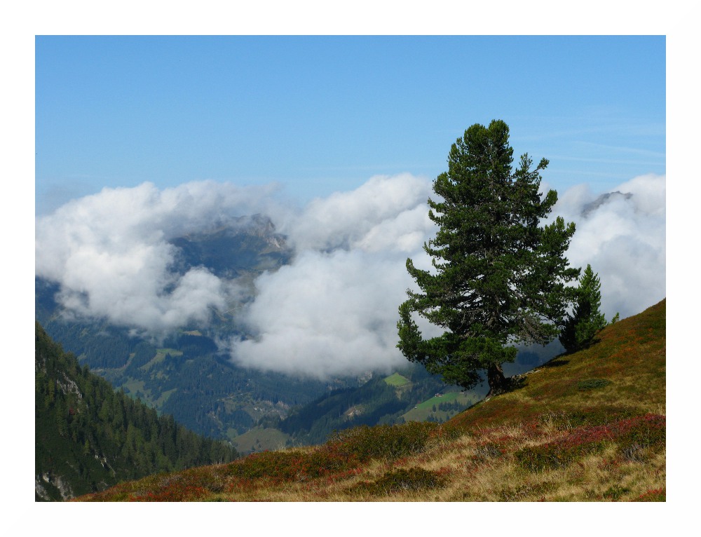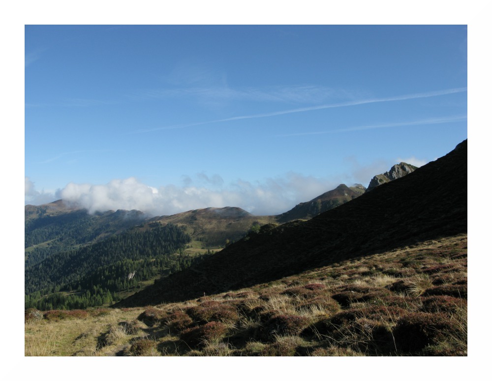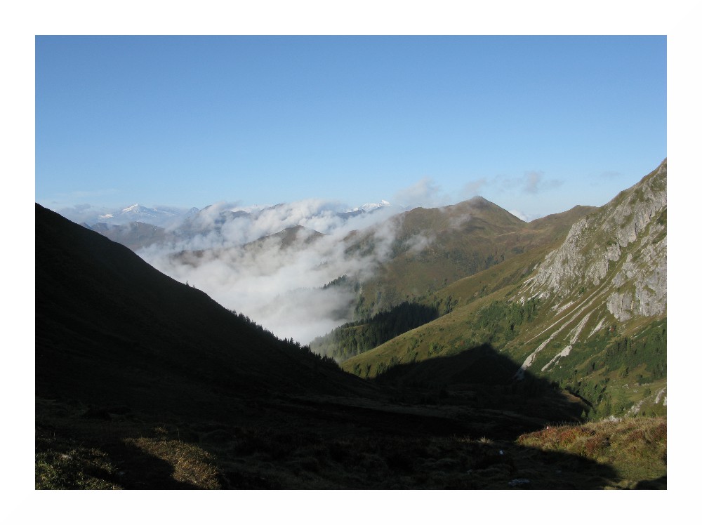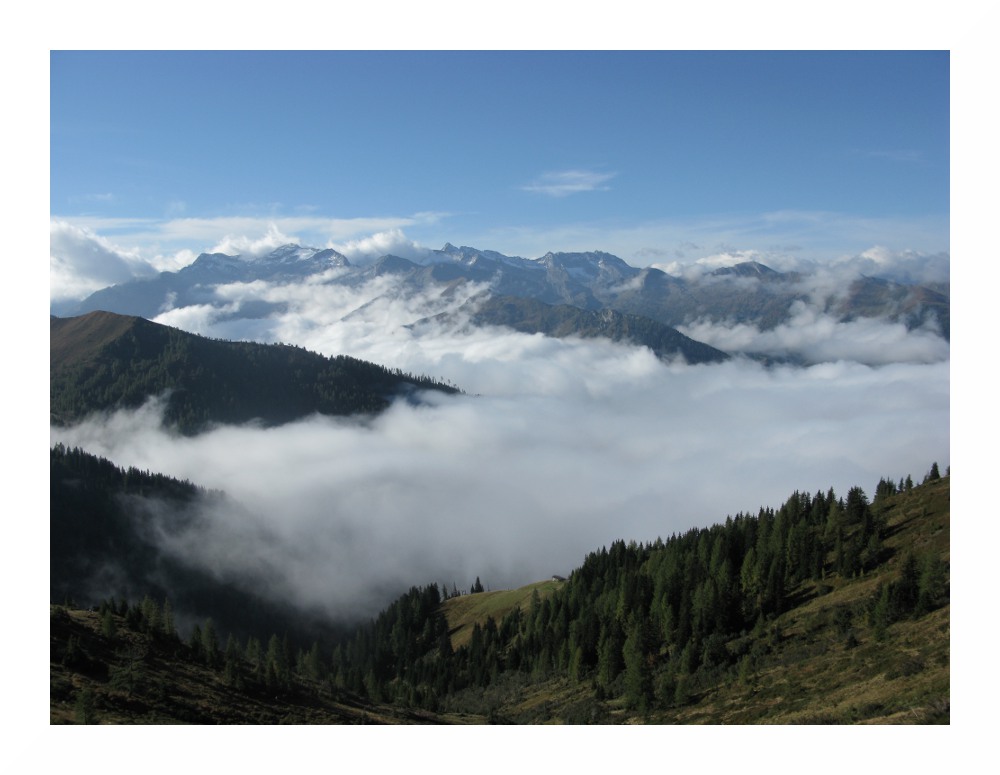 Bild 30: Traumhafte Aussicht nach Westen, wo die Kitzbüheler Alpen allerdings weitgehend von aufquellendem Hochnebel verdeckt sind