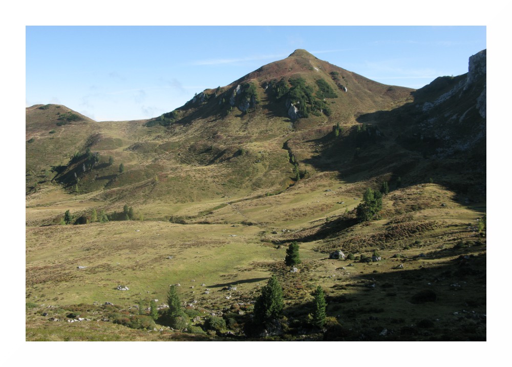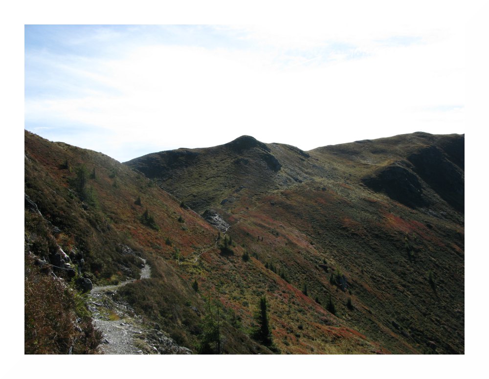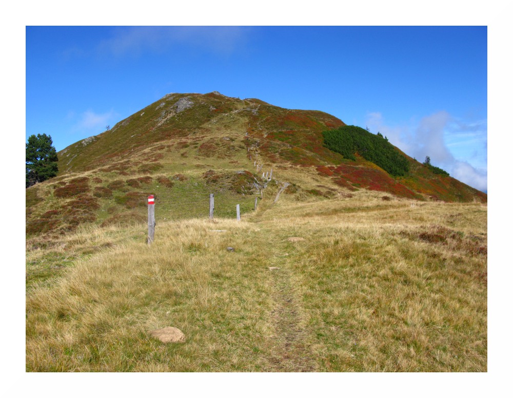 Dann geht es kurz hinab, ehe auf 1880 m der Weg zum Filzmoossattel abzweigt.