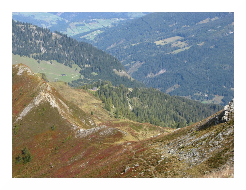 Bild 16: Blick nach Nordwesten in ein Seitental des Großarltals, das vom Ellmaubach durchflossen wird.