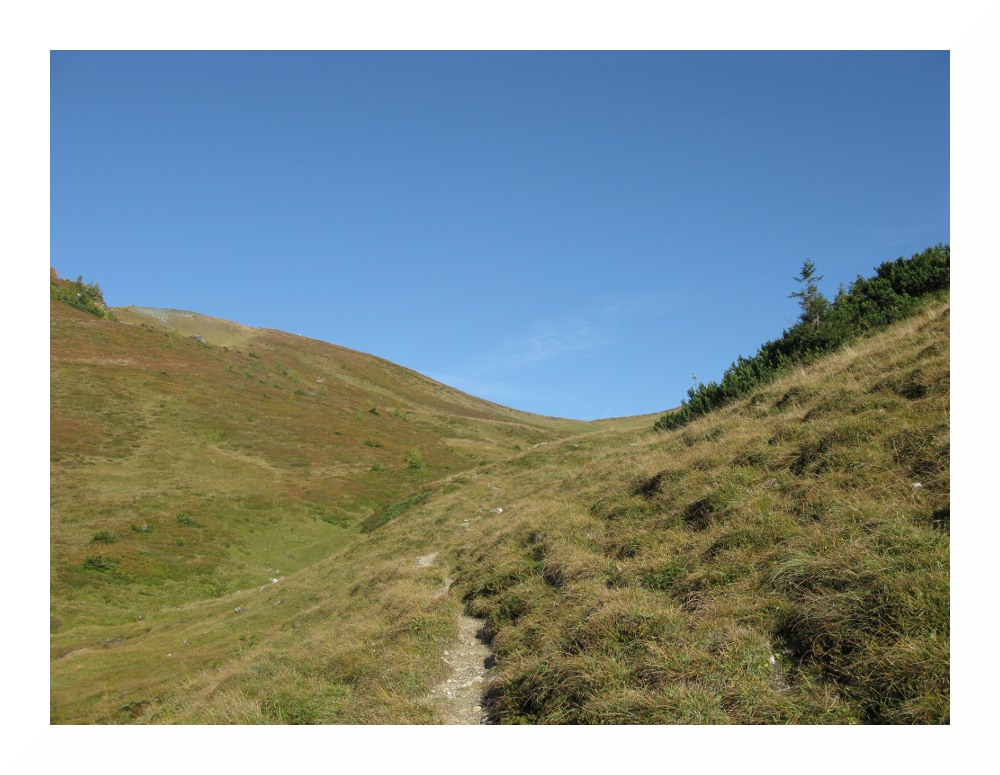 Gegen 8.00 verließ ich also die Hütte, drehte mich auch nicht mehr um, weil ich sie schon nach wenigen Minuten vermisste, und so gerne geblieben wäre. Tröstend stimmte nur, dass die Hütte zwei Tage später sowieso ihren letzten Tag der Sommersaison hatte, und ab 1. Oktober ohnehin geschlossen war.