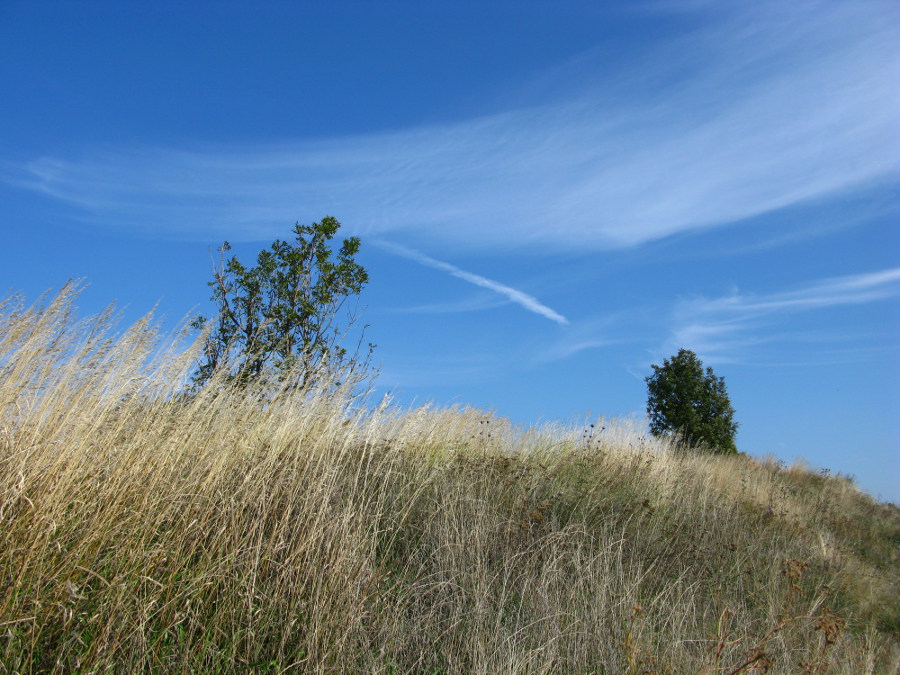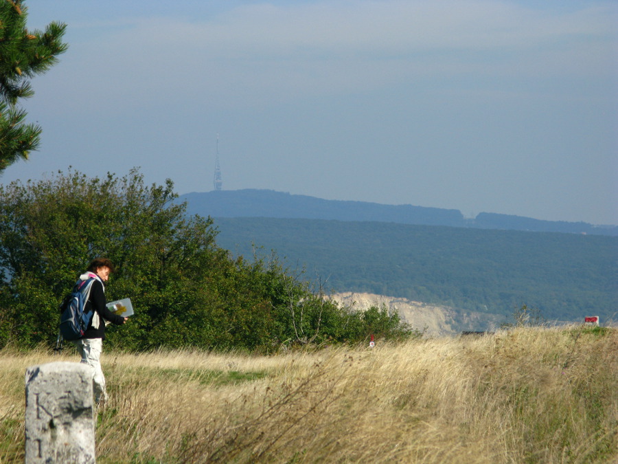 Links im Bild eine Französin, die ich kurz vor dem Keltenweg nahe Ruine Röthelstein traf. Sie hat den Pfad durch das Staudendickicht nicht ernsthaft für den Weg halten, bis ich ihr die roten Markierungen zeigte. Wir unterhalten uns kurz bis zum Braunsberggipfel, ehe sich unsere Wege trennten. Eine wirklich nette Begegnung, und eine Landschaftsgenießerin wie ich. Ursprünglich aus Lyon kommend fühlte sie sich auf dem Pannonischen Trockenrasen wie zuhause.
