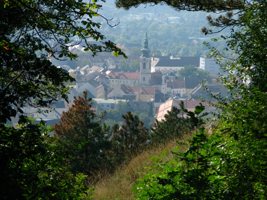 Ich folge weiter unten der Abzweigung Richtung Bad Deutsch-Altenburg, der entlang eines Hohlwegs jedoch am westlichen Ortsende von Hainburg herauskommt. Von dort muss ich entlang der Hauptstraße zurück zum Bahnhof gehen. Vermutlich umständlich, aber um die nächste S-Bahn zu erwischen, wollte ich mich nicht mehr auf Querfeldeinwege einlassen.
