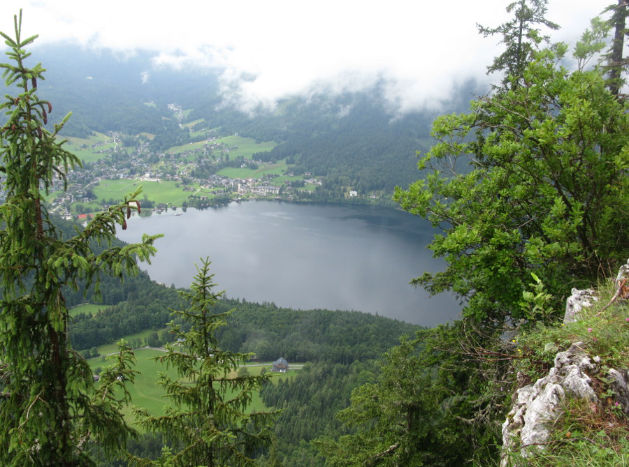 Beim Abstieg kurz vor Grundlsee-Ort bestätigt sich mein meteorologisch gewürztes Bauchgefühl. Ursprünglich hätte ich oberhalb des Sees unterhalb von Ahorn- und Klammkogel bis zum Kesselbrunn wandern wollen, um dann im Ortsteil Ölz abzusteigen. Aber der Sonnenschein und die stetig kompakten Stratuswolken in ca. 1200 m Seehöhe hielten mich davon ab. Jedenfalls setzte ein kräftiger Regenschauer ein, der mich trotz Regenhose komplett durchnässte. Ich wartete einige Minuten bei der Tourist-Info, und wanderte dann ungerührt weiter, während ich innerlich wieder zu trocknen begann.