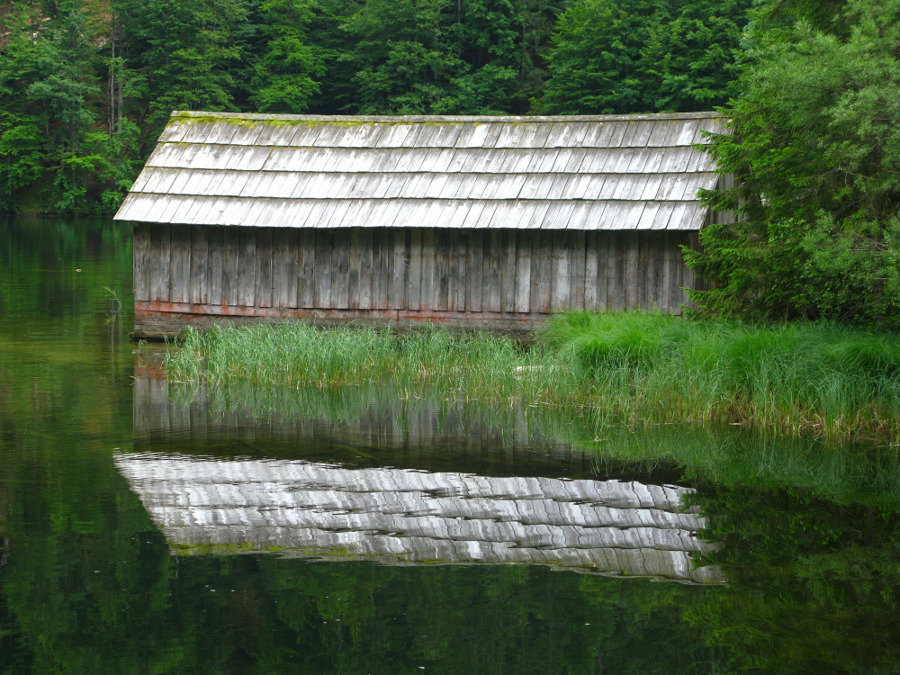 Bild 5 und 6: Bootshütte am See