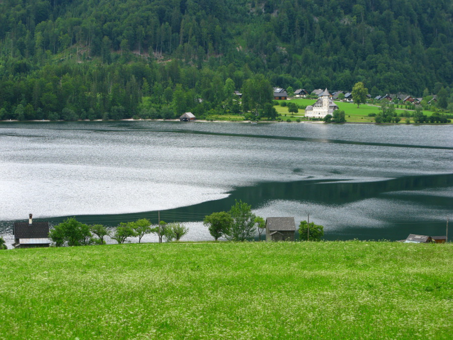 Bild 9: Wellen und Flaute auf dem See, im Hintergrund Schloß Grundlsee