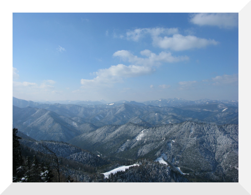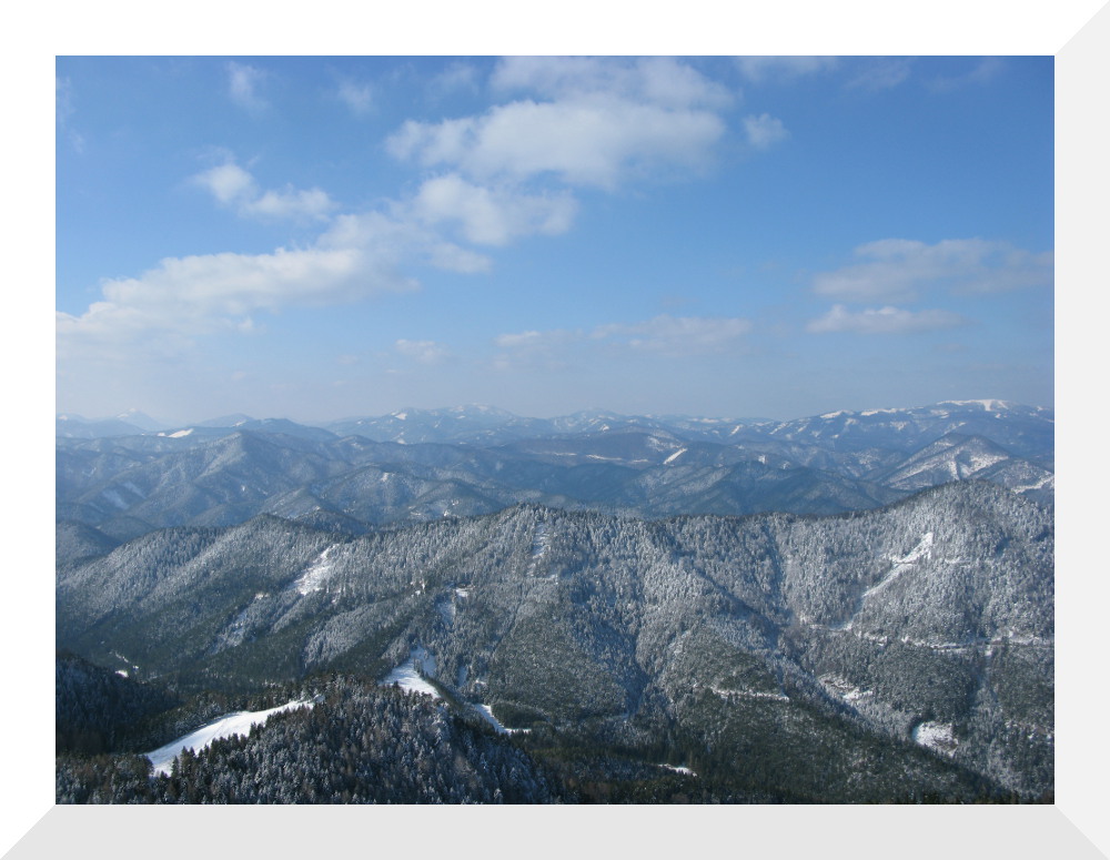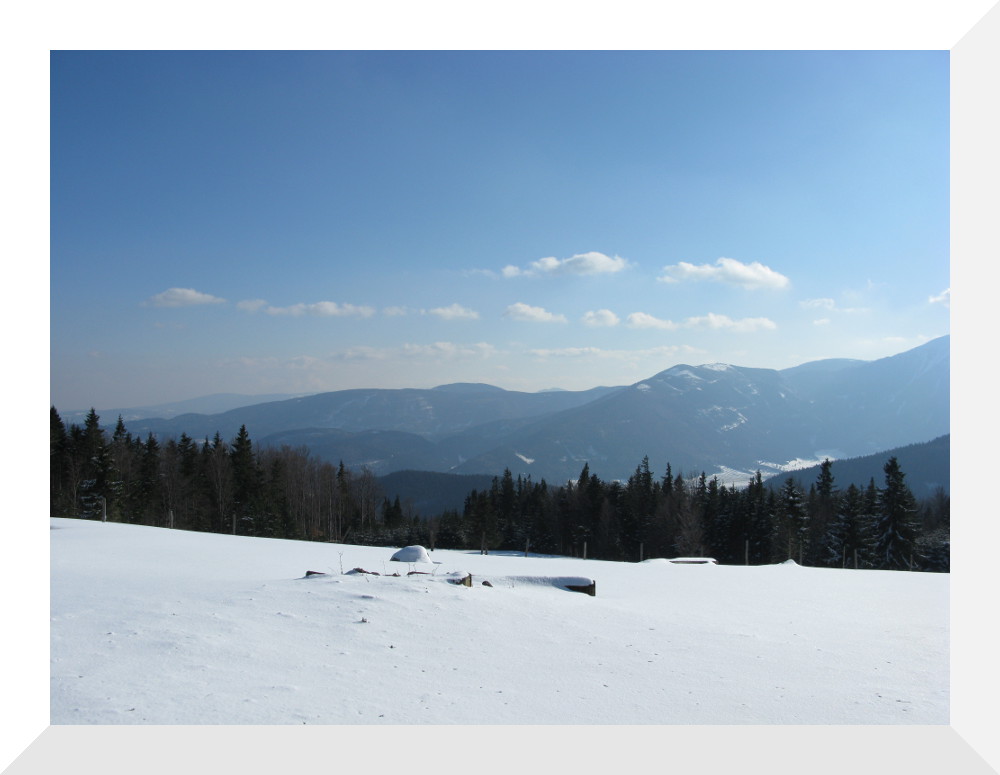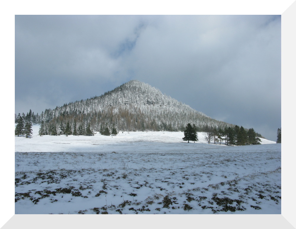 Die Semmering-Wechsel-Region kommt zum Vorschein, rechts der Große Hengst (1450m), der von Csaba Szepfalusi als "Leichte Schneeschuhwanderung" angegeben ist.