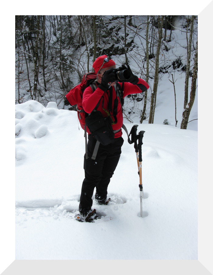 Für mich, der erst seit einem Jahr regelmäßiger Schneeschuhwandern geht, war es die schwierigste und längste Tour, die ich bisher gemacht habe, aber auch die abwechslungsreichste, streckenweise am Kamm entlang auch alpin geprägt. Es hat nicht nur viel Spaß gemacht, und meine Grenzen aufgezeigt (die Bänder und Sehnen wurden nach diversen Stürzen und Ausrutschern gut durchgedehnt), sondern auch Kenntnisse über die derzeitige Lawinensituation gebracht. Es ist immer hilfreich, wenn man sich das in der Praxis anschauen kann, was es heißt, wenn auf einem 30° und steilerem Hang lockerer Pulverschnee auf einer rutschigen Altschneedecke lagert. Man weiß so viel besser, was dies für die Lawinengefahr und Tourengeher bedeutet.Danke an Günter für die Begleitung - im Anschluss noch ein paar ausgewählte Bilder von ihm: