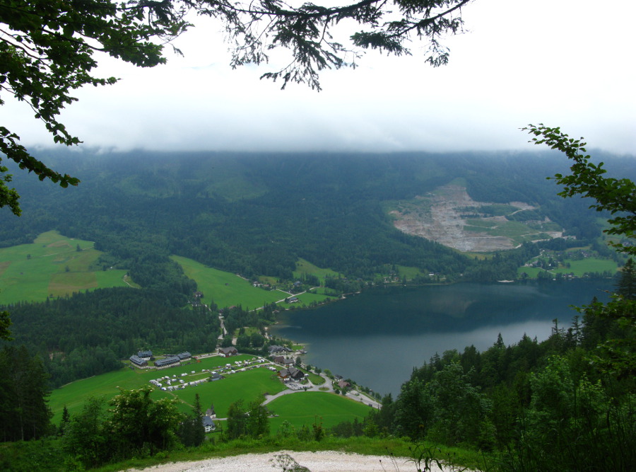 Bild 5: Gößl am Ostufer des Grundlsees, rechts das Gipsbergbau - und widerspenstige Stratuswolken