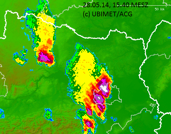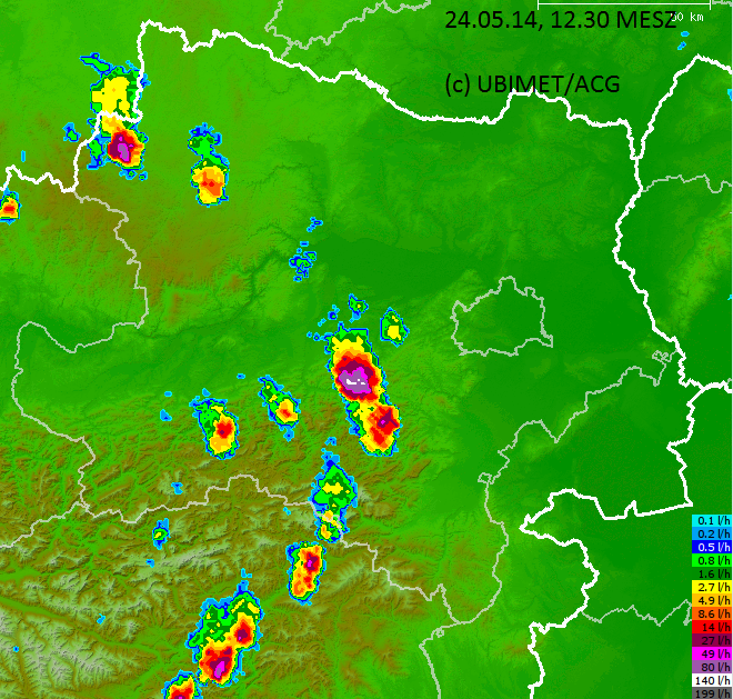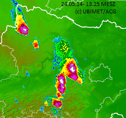 Es handelt sich um die mittlere der drei Gewitterzellen, in diesem Fall um die Schwächste.