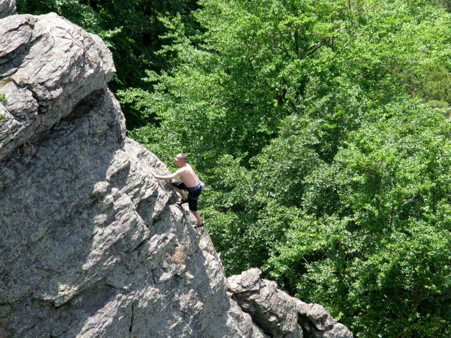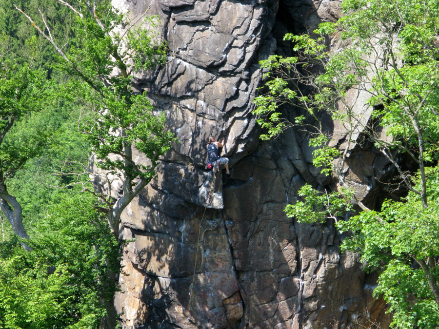 Bild 32: Unterdessen versierte Kraxeleien am Felsen gegenüber der Ruine.
