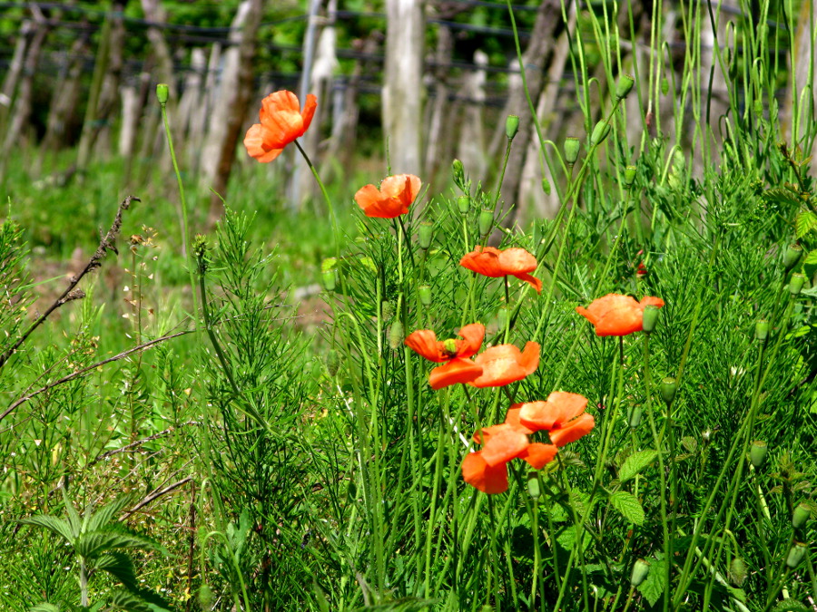 Bild 2: Prächtige Kontraste durch den Mohn und die Rebstöcke im Hintergrund.