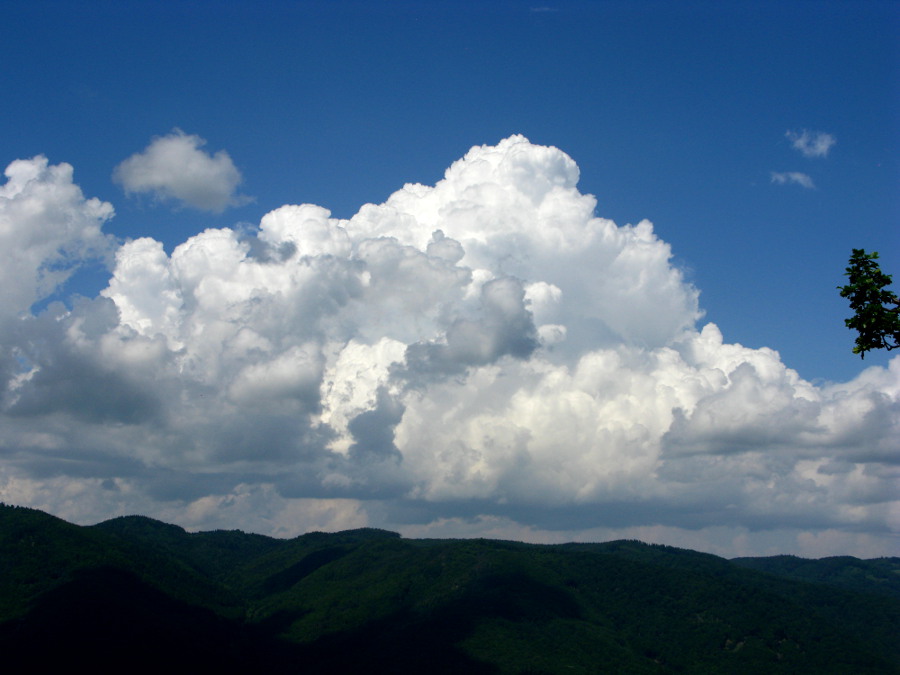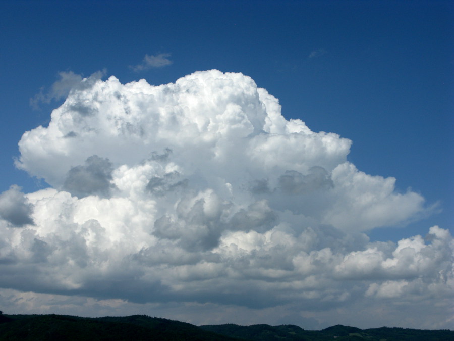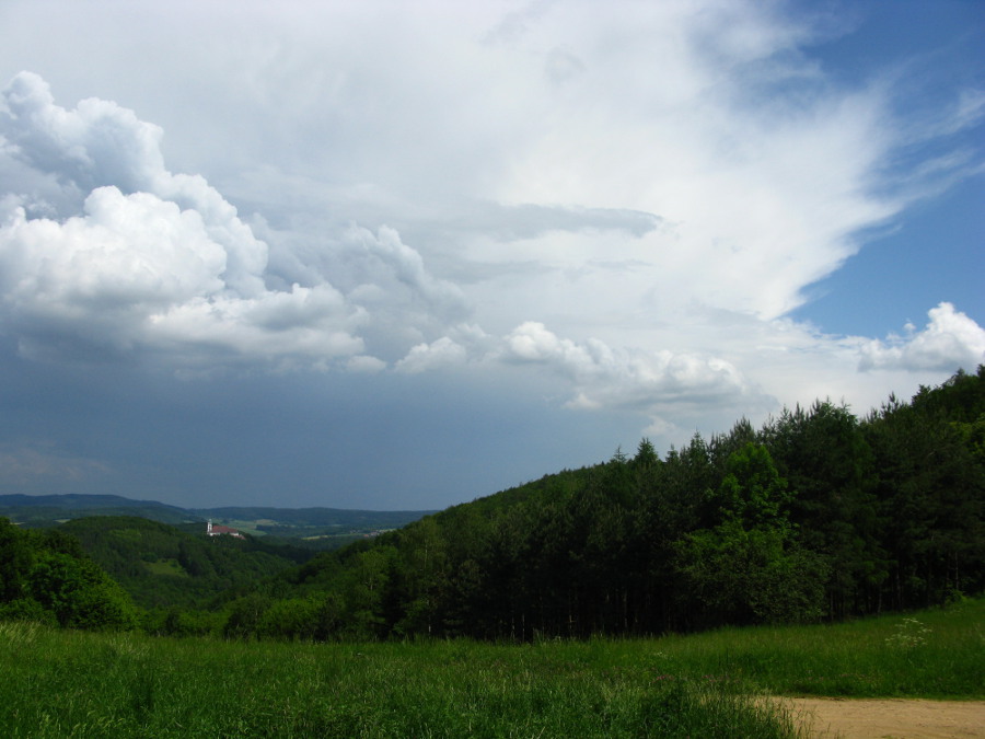Die mächtigen Quellwolken im Hintergrund (Cumulonimbus calvus) gehören zur Waldviertel-Zelle.