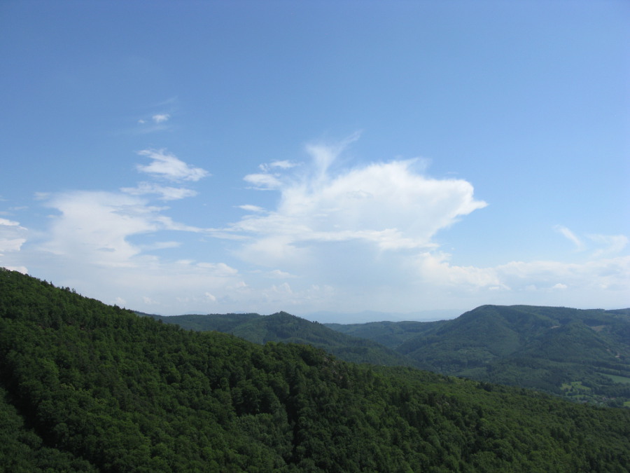 Bild 16: Nach Westen zu noch harmlose Quellbewölkung, bis auf ganz links hinten.