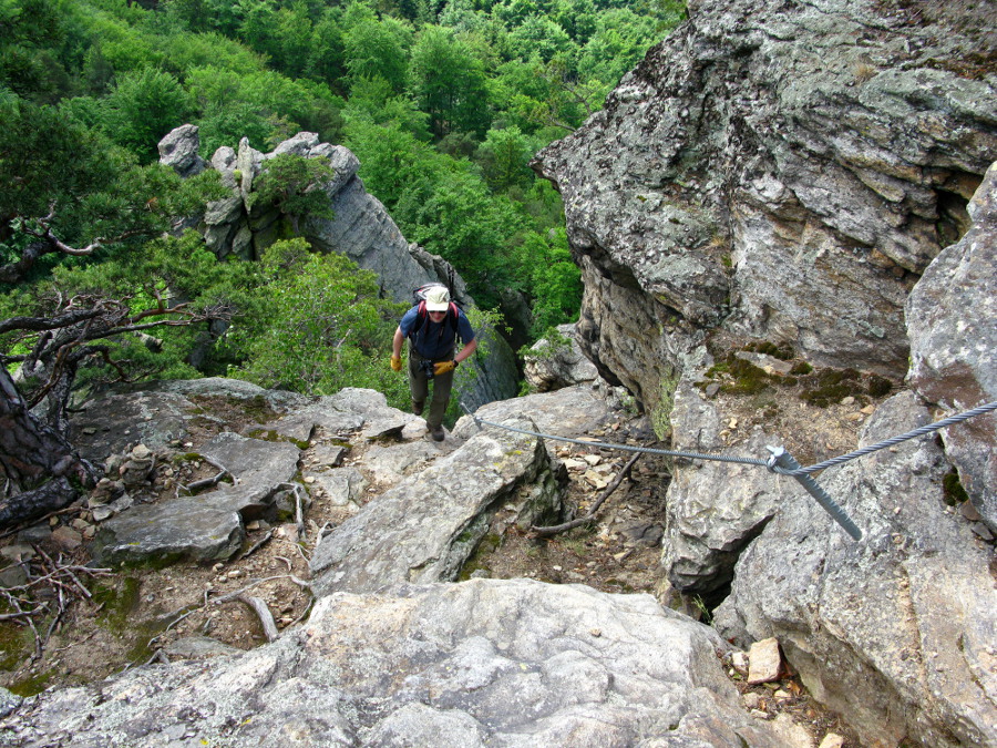 Bild 18: Inzwischen beim Abstieg, ganz unten beim Seil befindet sich die kurze B-Stelle,