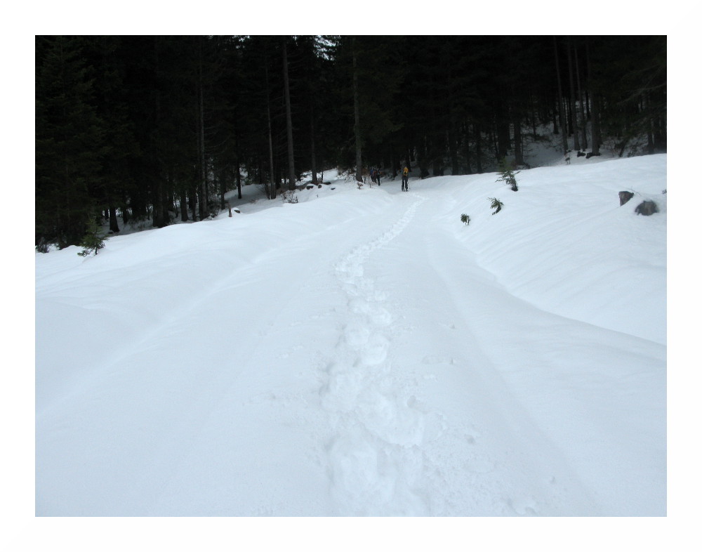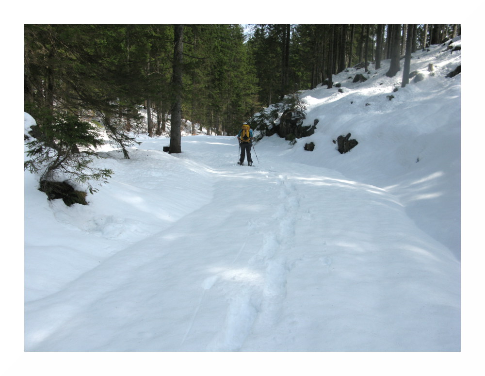 Bild 6: Der Forstweg weist noch genügend Schnee auf, was sich am Rückweg aber dramatisch ändern sollte.