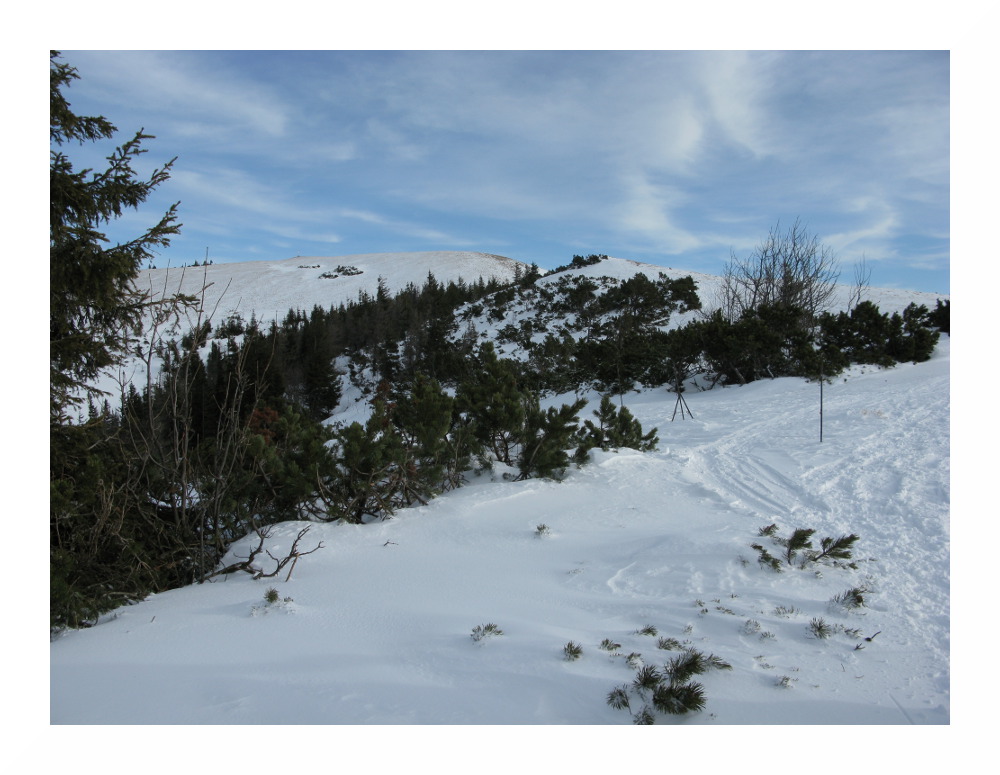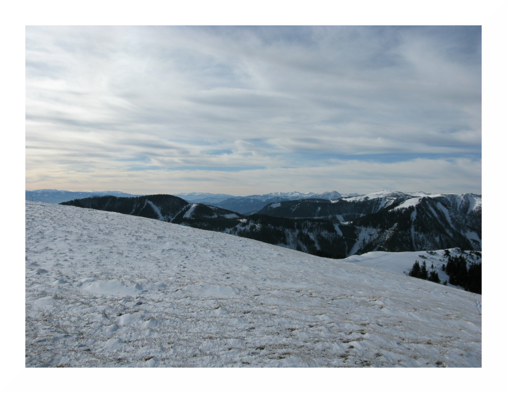 Im Anschluss folgt eine wunderschöne Wanderung vom Karlkögerl zum Gaiberg (1410m), immer am Kamm entlang nur mäßig fallend bei ausreichender Schneelage.