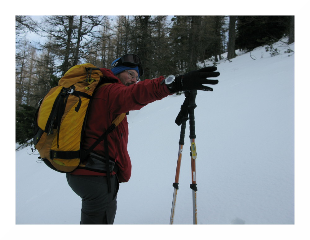 Bild 19: Reini erklärt geduldig auch für die zuletzt zu uns gestoßenen Gruppenteilnehmer, wie eine Lawine funktioniert.