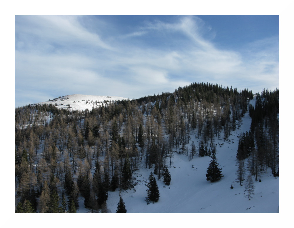 Der lichte Lärchenwald ist ebenfalls nicht zu unterschätzen, auch hier sind schon Lawinen abgegangen!
