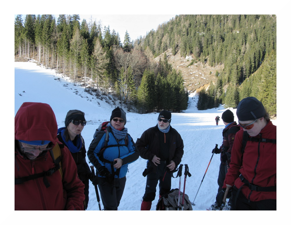 Unsere zweite Wanderung ging bei fabelhaftem Wetter und erstaunlich wenig Wind auf den Hochanger (1682m). Wir nutzten trotz verbreitet aperen Verhältnissen eine ''Schwachstelle'' im Tauwetter, nämlich das nordseitig und damit weitgehend schattige Lappental als Aufstiegsweg zur Göricher Alm (1429m).
