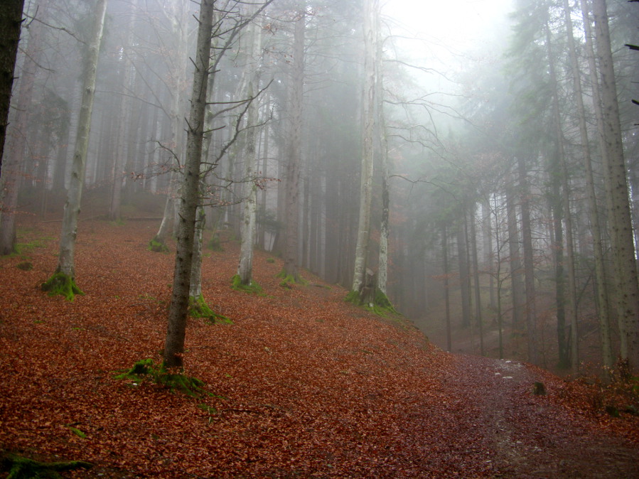 Bild 9: Nebel und kein Schnee beim Aufstieg zur Arzler Alm.