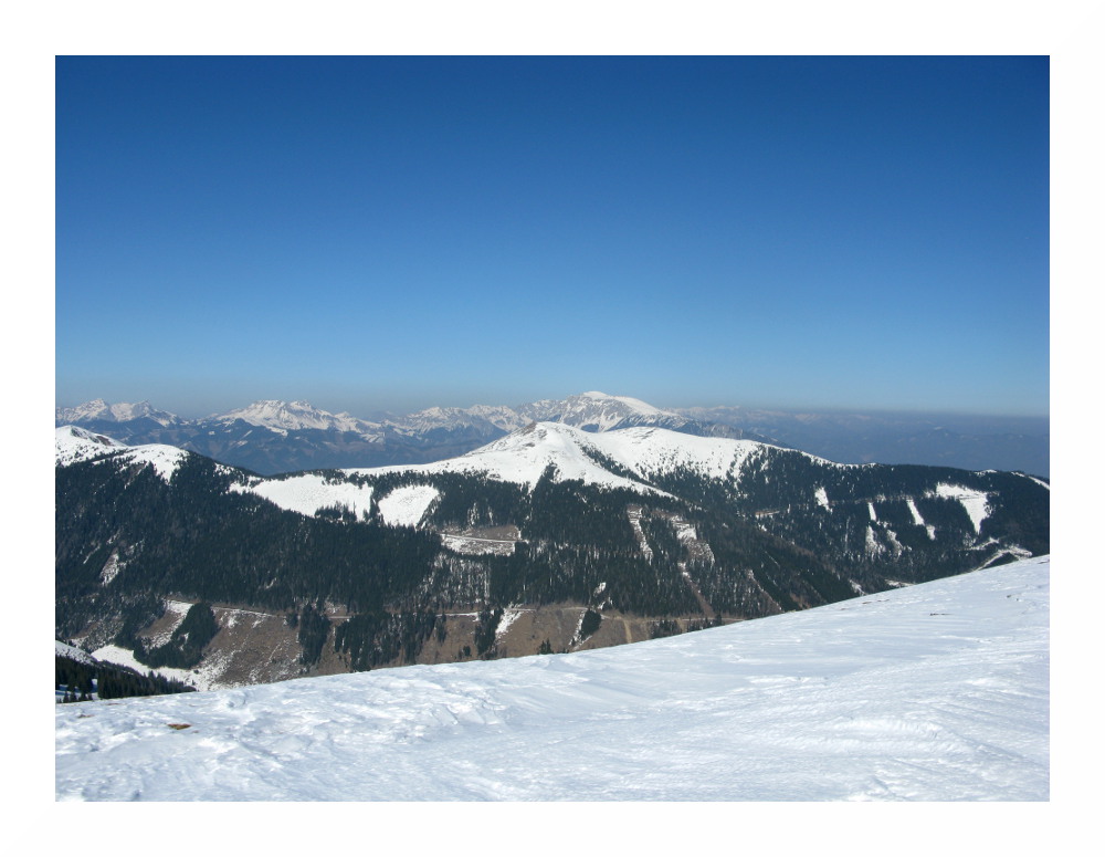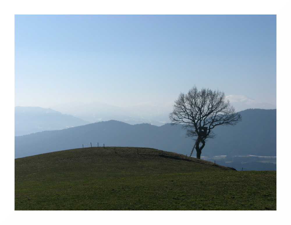 Bild 1: Startpunkt am Hausberg mit so viel Dunst, dass nicht einmal die gegenüberliegende Packalpe scharf heraussticht.