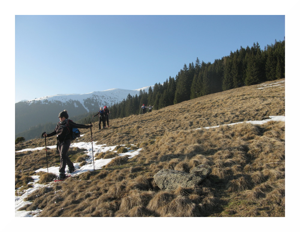 - Wegführung: Hausberg (960m) - Grafenalm (1432m) - 1550 m (Schneeschuhe angelegt) Maria Schnee (1822m) - Kumpitzstein (1924m) - Lamprechtshöhe (2114m) - Lamprechtsalm (1480m) - 1260 m (Schneeschuhe abgelegt) - Kühberger - Hausberg
