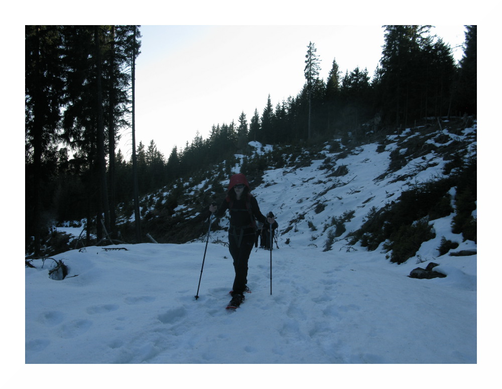 Dieses Mal hieß es, die ersten 500 hm die Schneeschuhe tragen, immerhin machten wir dabei rasch Höhenmeter