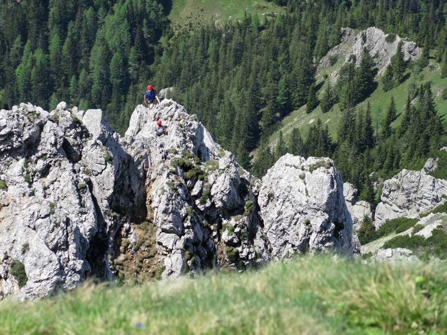 Nach dem Ausstieg geht es fast eben zum Gamseck hinüber, wo wir Günter und Eli beim Erklimmen der letzten Meter zum Ausstieg vom Wilden Gamseck beobachteten.
