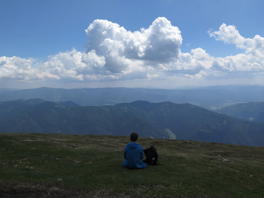 Im Hintergrund reicht die Sicht heute vom Hochschwab übers Gesäuse und Kräuterin bis Dürrenstein und Ötscher.