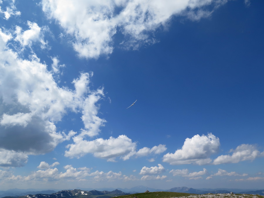 Bild 42: Ein Segelflieger nutzt eine Thermikblase über dem Gipfel und schraubt sich in die Höhe