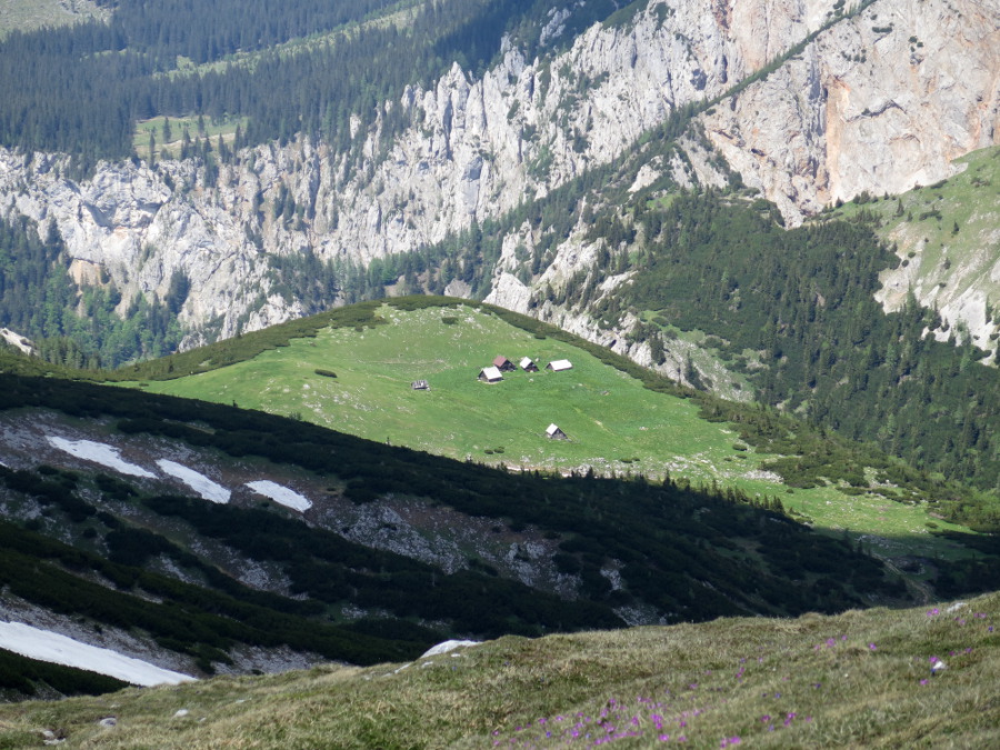 Bild 43: Die Grasbodenalm (1650m), von dort muss man nochmals 100 hm absteigen, ehe es hinauf zum Habsburghaus geht.