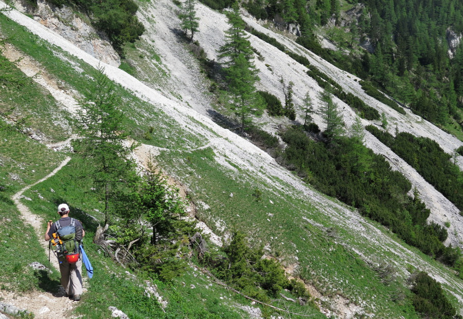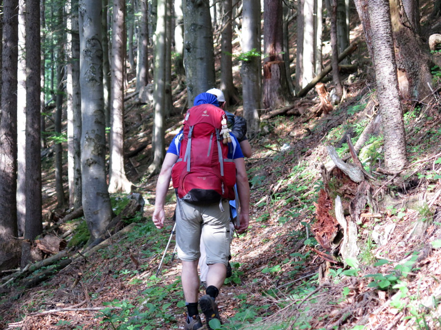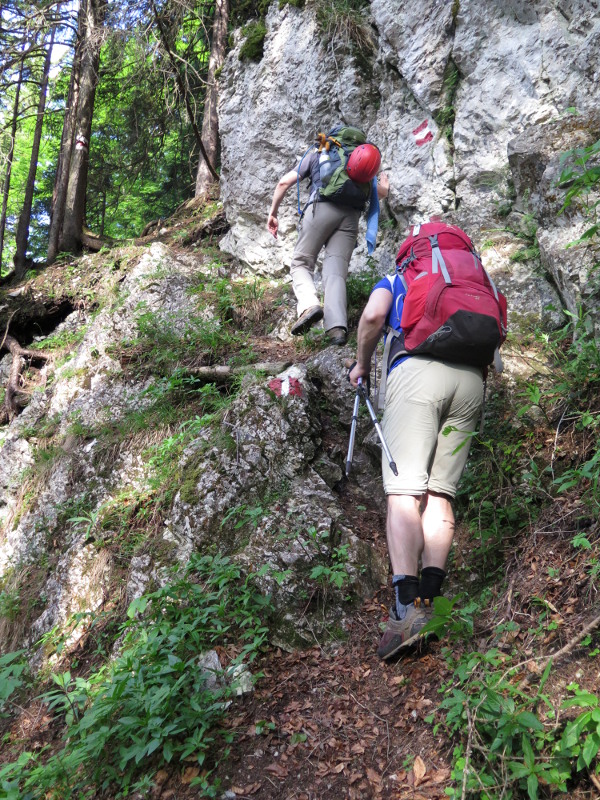 Mein Fazit für den zweiten Teil: Im Abstieg erfordert der Altenberger Steig vor allem konzentriertes Gehen, da viel Schutt auf dem Steig liegt. Technisch hat er keinerlei Schwierigkeiten vorzuweisen. Die Ausgesetztheit hält sich in Grenzen. Der Schutzsteig ist fast durchwegs gut zu begehen, auf angenehmen Waldboden. Erst im hinteren Teil scheint er seltener begangen zu sein, hier liegen ein paar Bäume quer, die aber überklettert werden können.