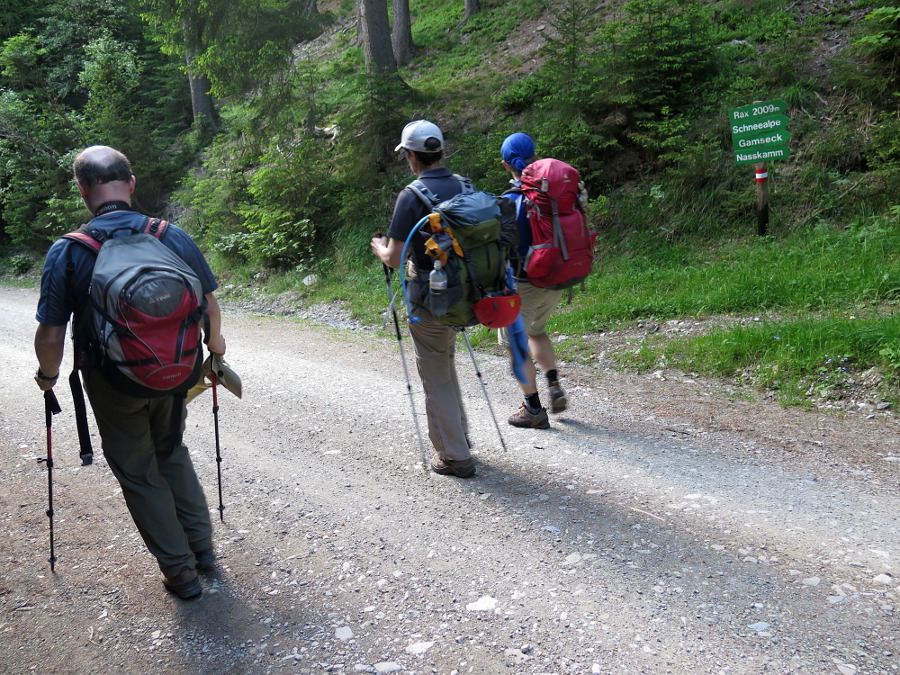 - Wegführung: Naßkamm-Parkplatz (980m, 9.05) - Naßkamm - Grabnergupf (1553m, 10.37) - Gamsecksteig (A/B, 11.30) - Gamseck (1857m, 12.35) - Heukuppe (2007m, 13.35-14.20) - Altenberger Steig - Schutzsteig (16.25) - Parkplatz (18.05)