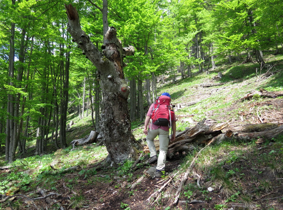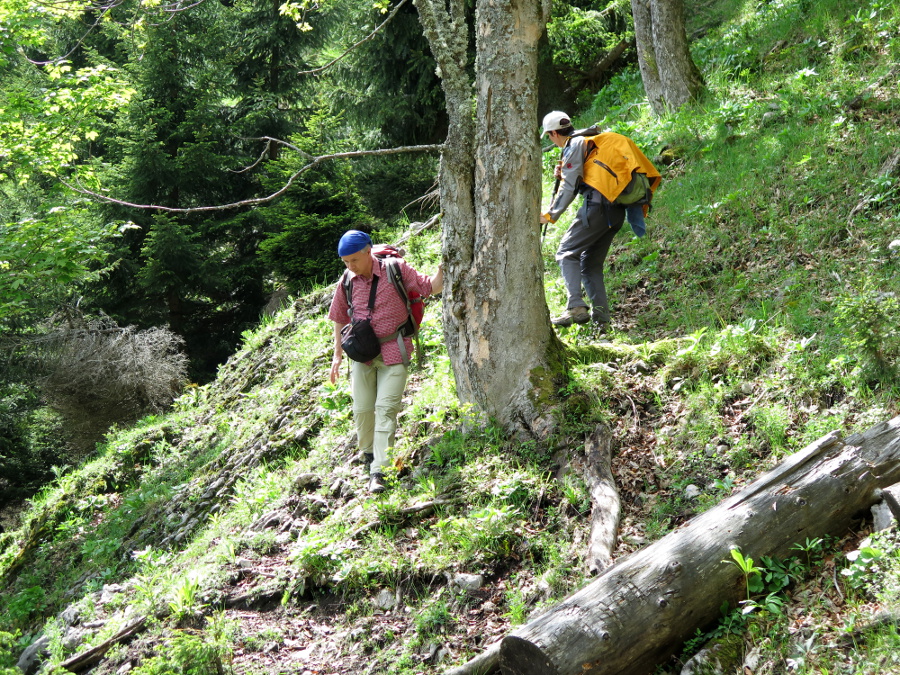 Dann erwischten wir den falschen Kamm, aber der Aufstiegskamm war ohnehin ziemlich verwachsen. Auf der gegenüberliegenden Seite ging es wesentlich bequemer und weniger steil hinab.