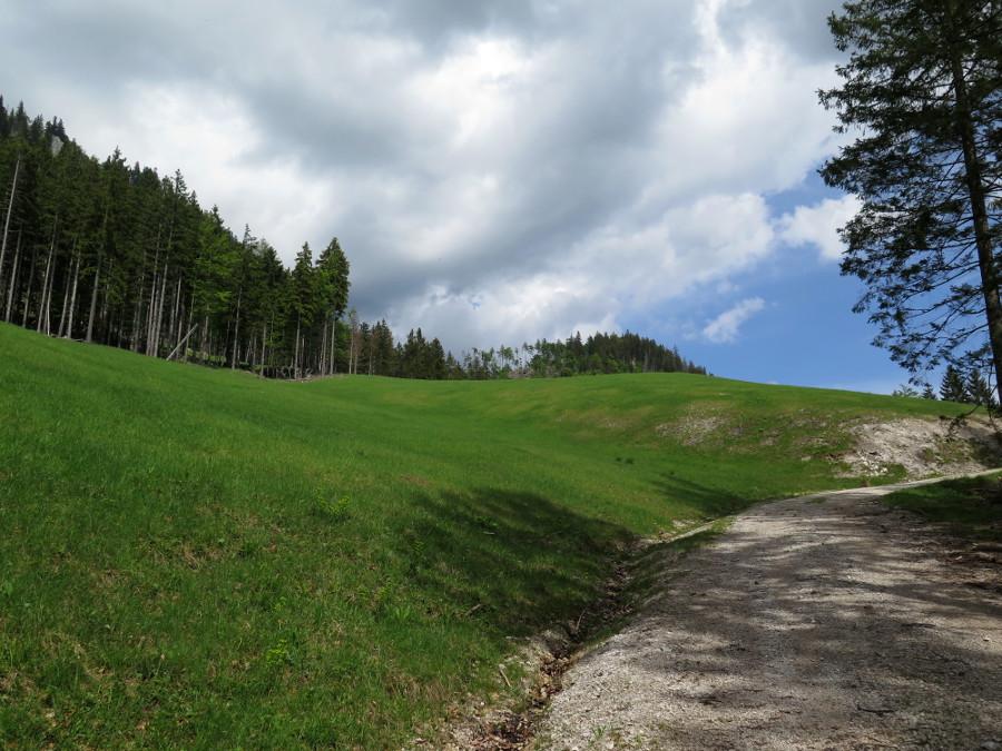 Rechts hinten sieht man die Zellerhüte, zwischen Vorderem und Mittlerem Zellerhut schaut der Hochstadl hervor.
