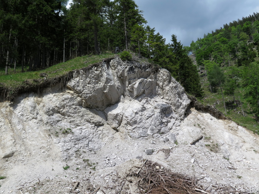 Das Waldstück wurde offensichtlich geschlägert und gerodet und später mit Gras besäet.