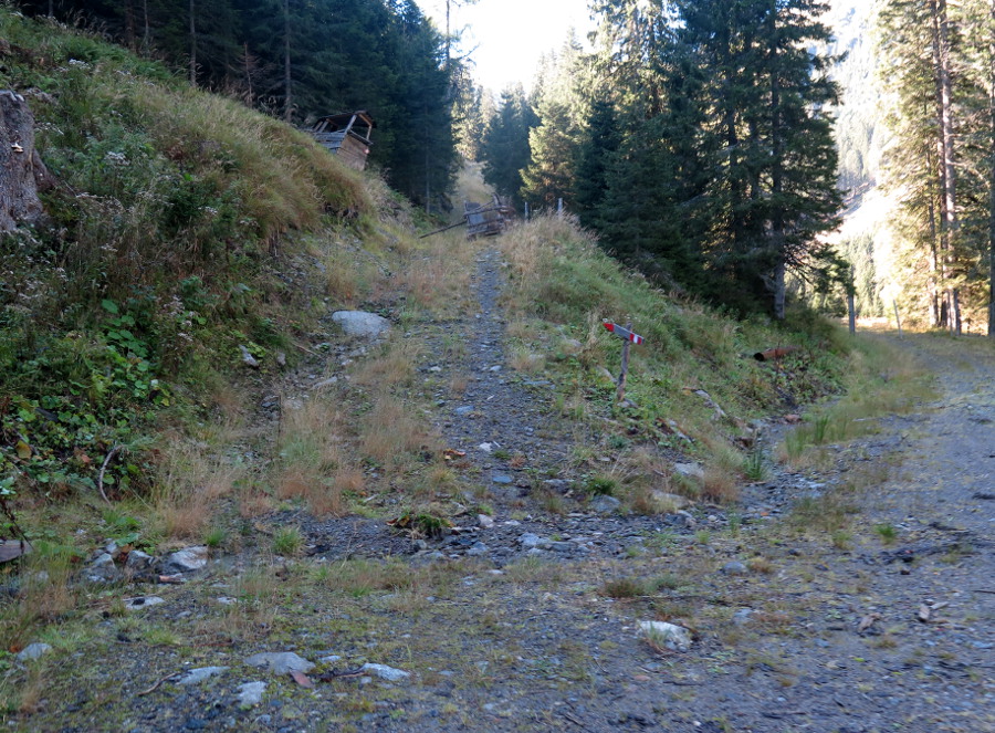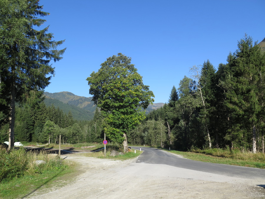 Ab dort müssen wir zu Fuß ins Tal eini hatschen. Daran hindern kann man uns nicht, es gilt das freie Wegerecht.